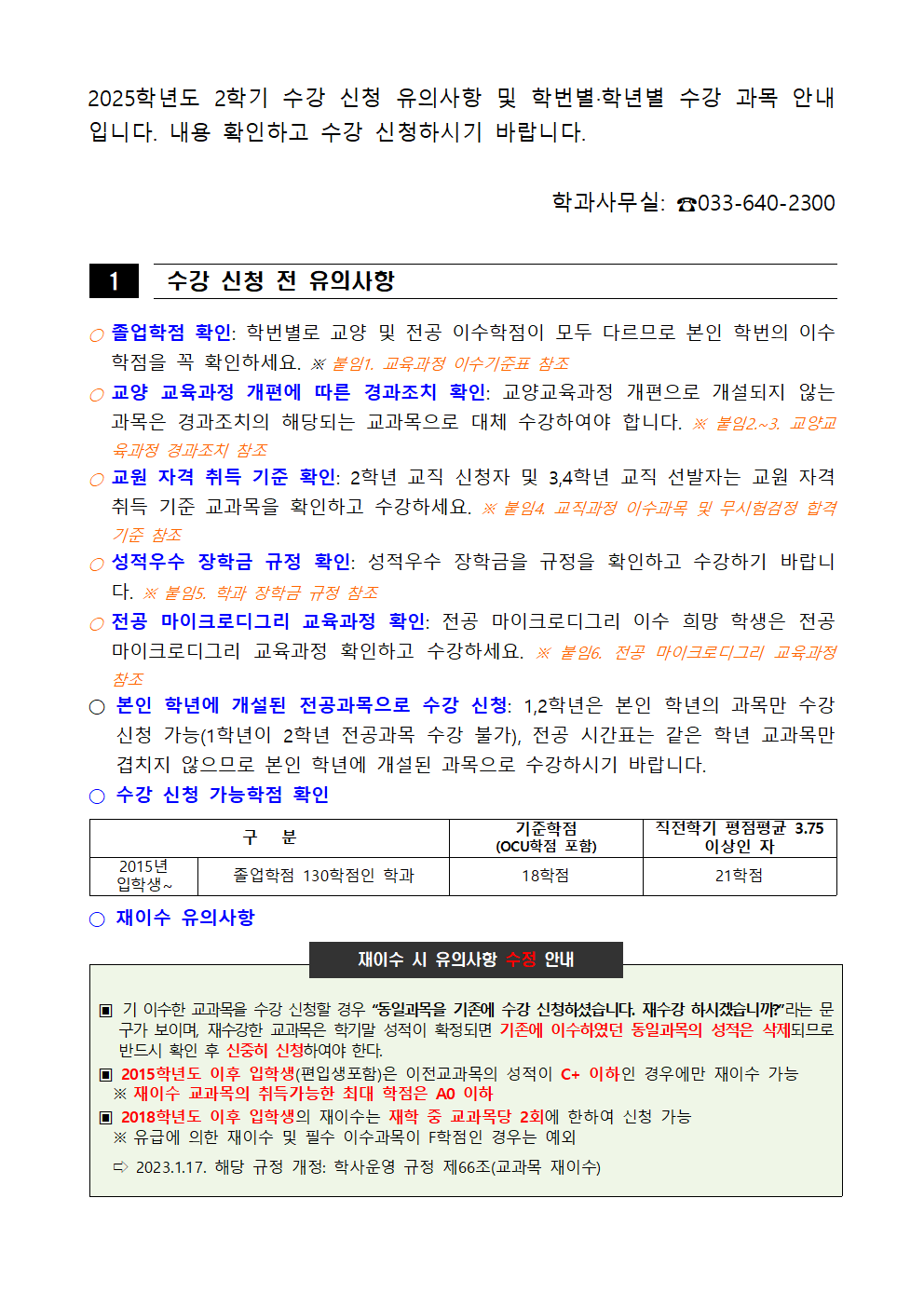 [학부] 2025학년도 2학기 학년별 수강신청 안내