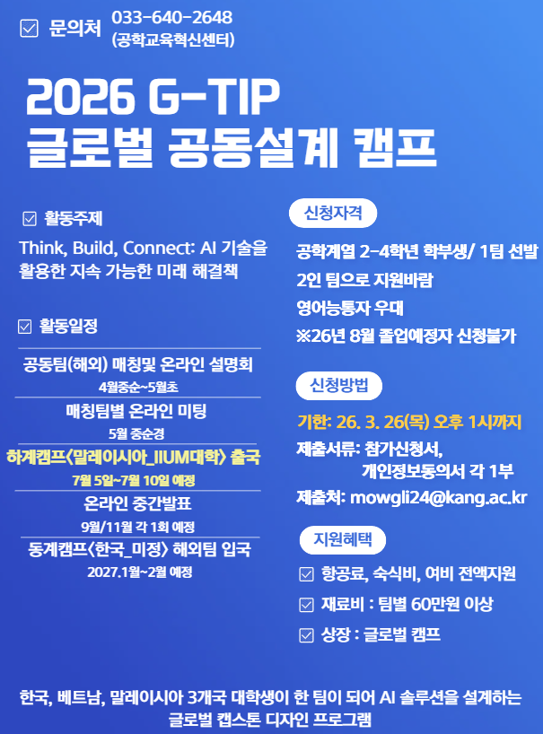 ✅2026 G-TIP 글로벌 공동설계 캠프(Global Team-based Innovation Project)