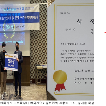 산업경영공학과 21학번 정제훈 외 2명, ‘산업현장 문제해결형 디지털 산업혁신 빅데이터 플랫폼 아이디어 경진대회’ 『장려상』 수상