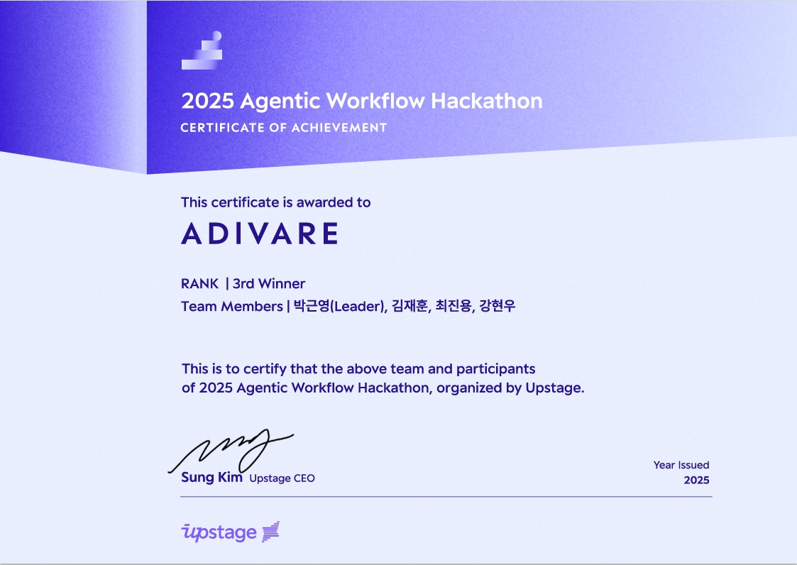 2025 Agentic Workflow Hackathon 우수상·특별상 수상