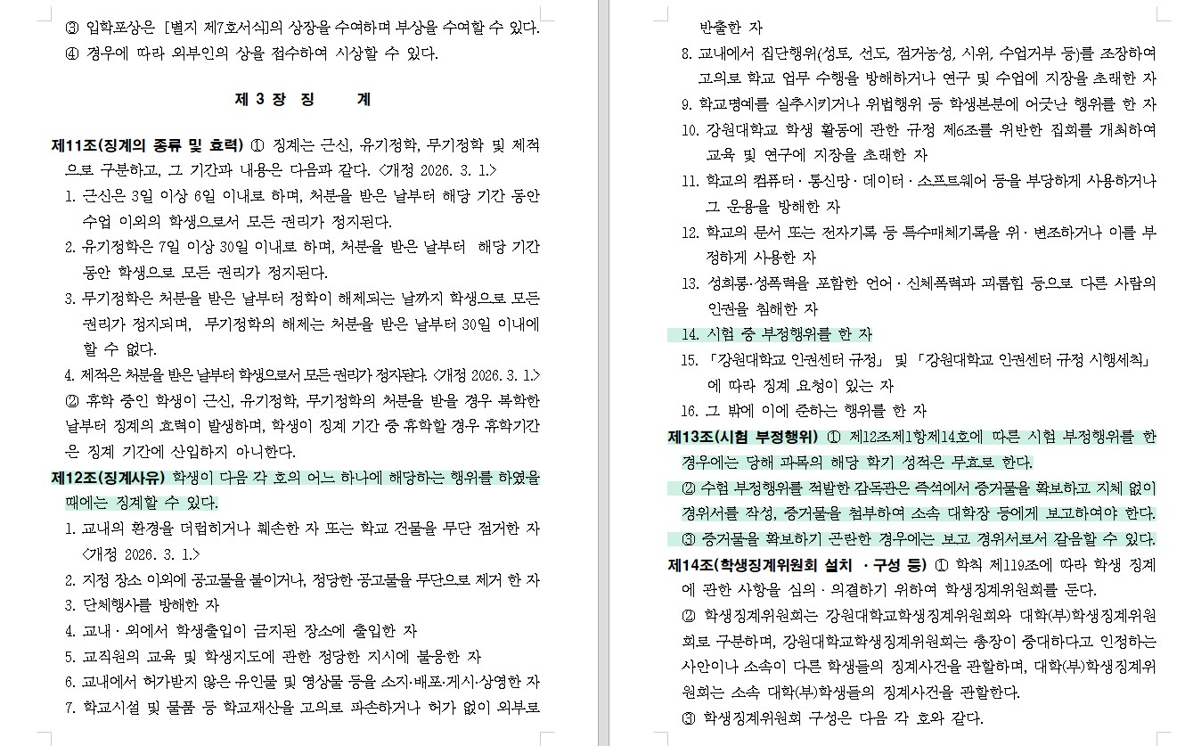 fnctId=bbs,fnctNo=642 시험 부정행위에 관한 지침 알림 작성일 2026.04.01 작성자 노종민 조회수 94 강원대학교로 통합됨에 따라, 시험 부정행위가 징계사유가 될 수 있음을 공지합니다 첨부파일 첨부파일이(가) 없습니다.
