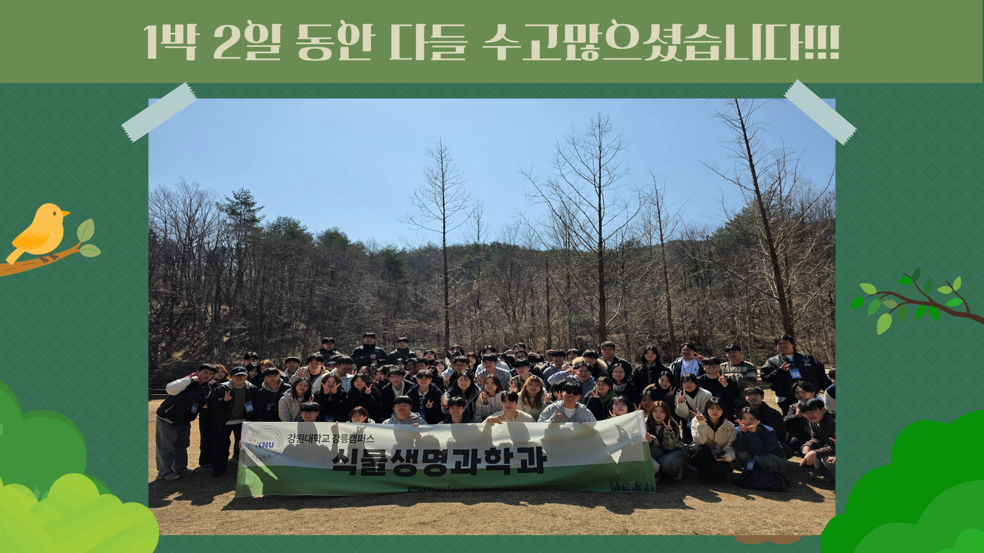 fnctId=bbs,fnctNo=772 03.19.(목)~03.20.(금) 학과 MT 글번호 329226 작성일 2026.03.23 작성자 오경해 조회수 255 첨부파일 첨부파일이(가) 없습니다.